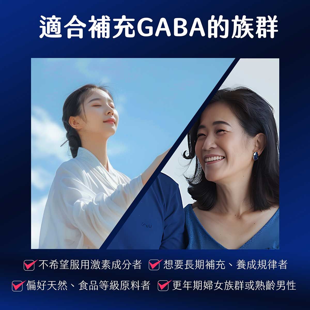 GABA為重要傳導物質之一,有助於調節生理機能與幫助入睡。作為保健食品補充使用,可搭配健康生活方式調整睡眠品質。