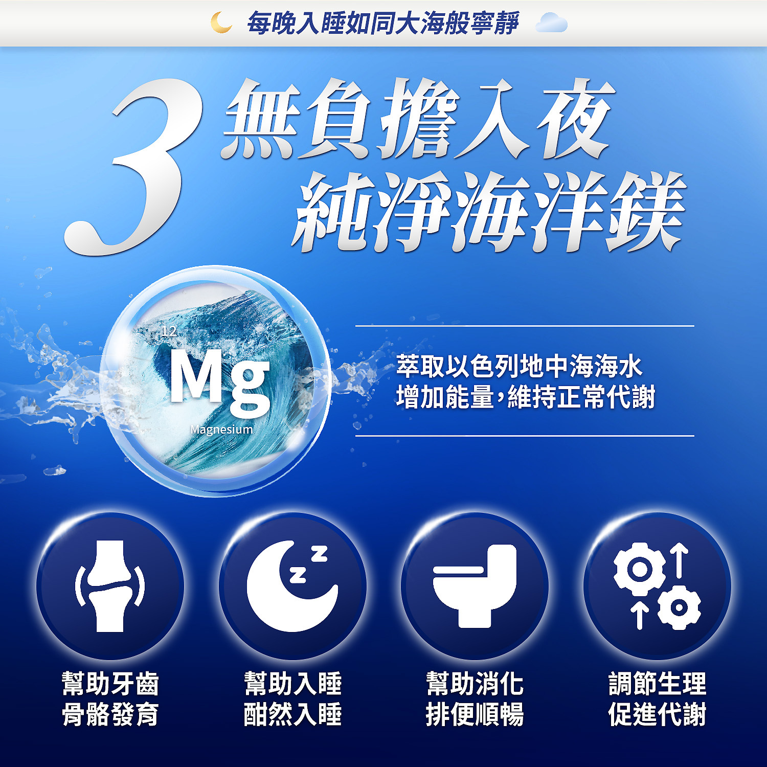 鎂(Magnesium):讓你感受按摩SPA的舒適感,穩定睡眠品質更簡單。