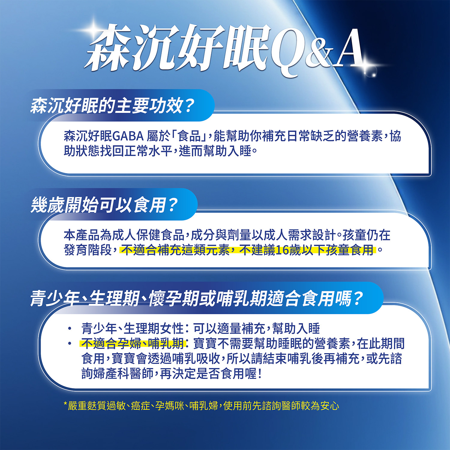 森沉好眠GABA益生菌屬於「食品」,並非藥物,長期食用不會對身體造成負擔,且配方劑量皆控制在合理範圍,其作用機轉為「消化吸收GABA及其他好眠因子→漸進式的習慣正常作息→輔助你回到正常的時間休息」,並穩定幫助入睡。