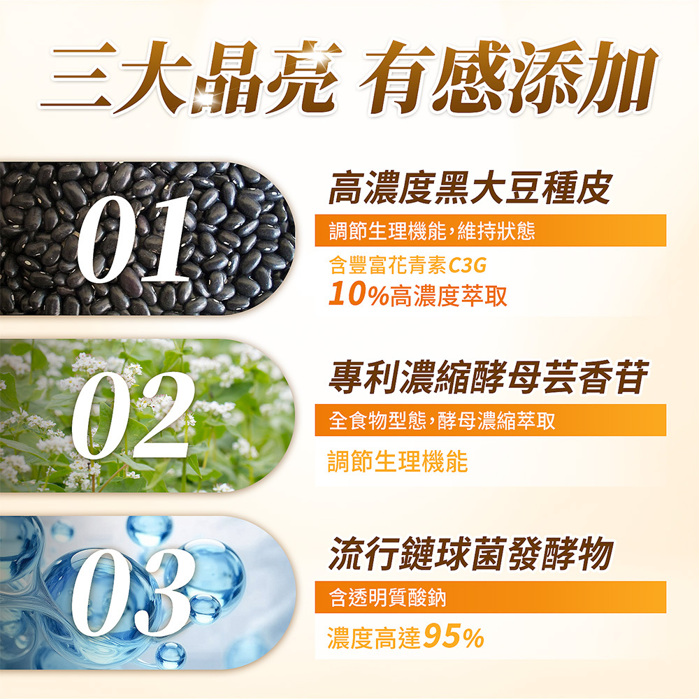 ▸▸ 舒適有感:新科技美國專利濃縮酵母(含芸香苷)、黑大豆種皮...等