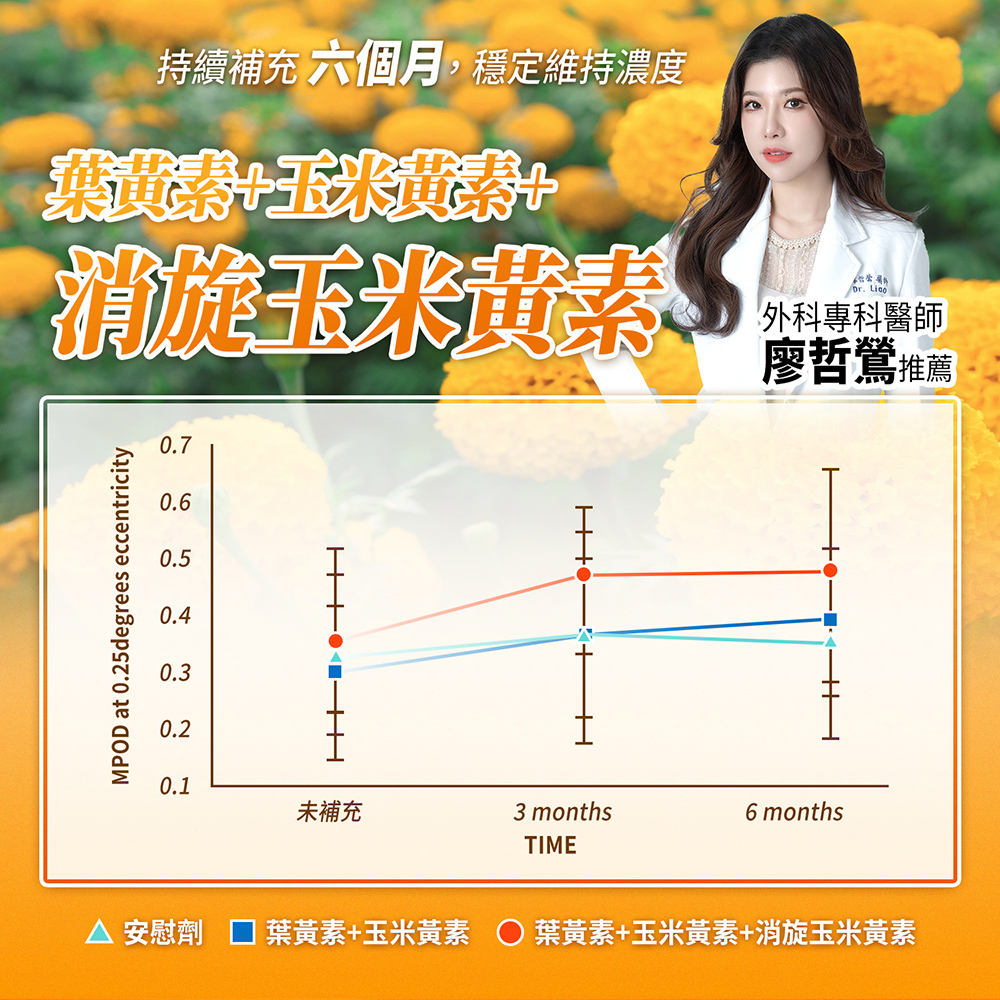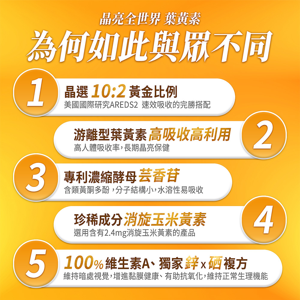 ▸▸ 黃金比例10:2,另添加「消旋玉米黃素」全方位晶亮