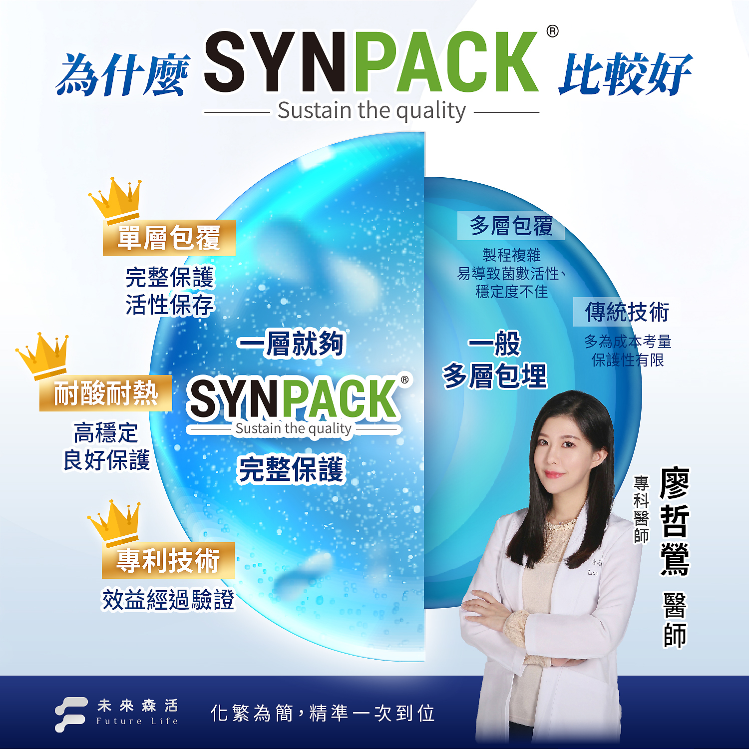 ▸▸ 專利SYNPACK®動態氣控科技穩定益生菌,存活率UP