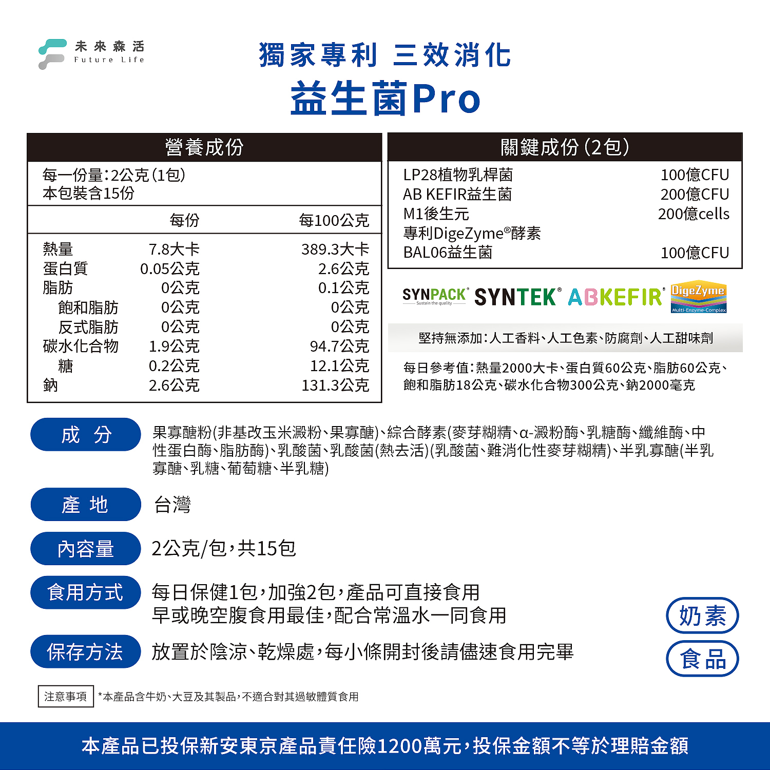 未來森活益生菌主要有幫助消化的美國綜合酵素及10種菌株。