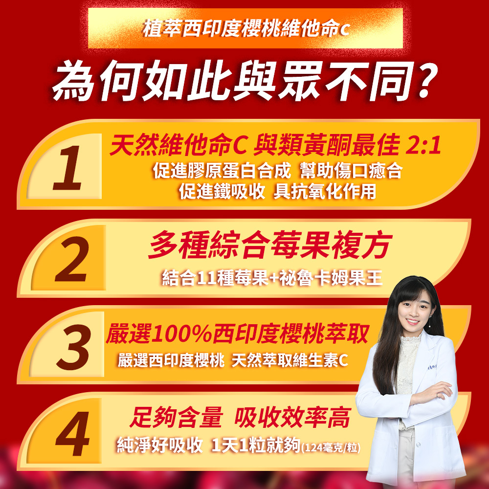 ▸▸ 嚴選西印度櫻桃,“天然”萃取維生素C